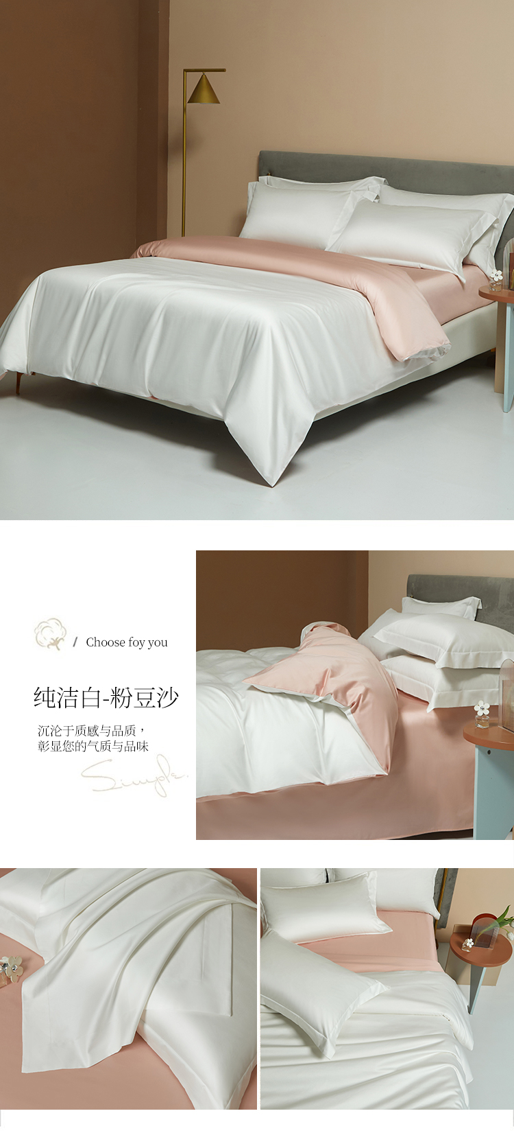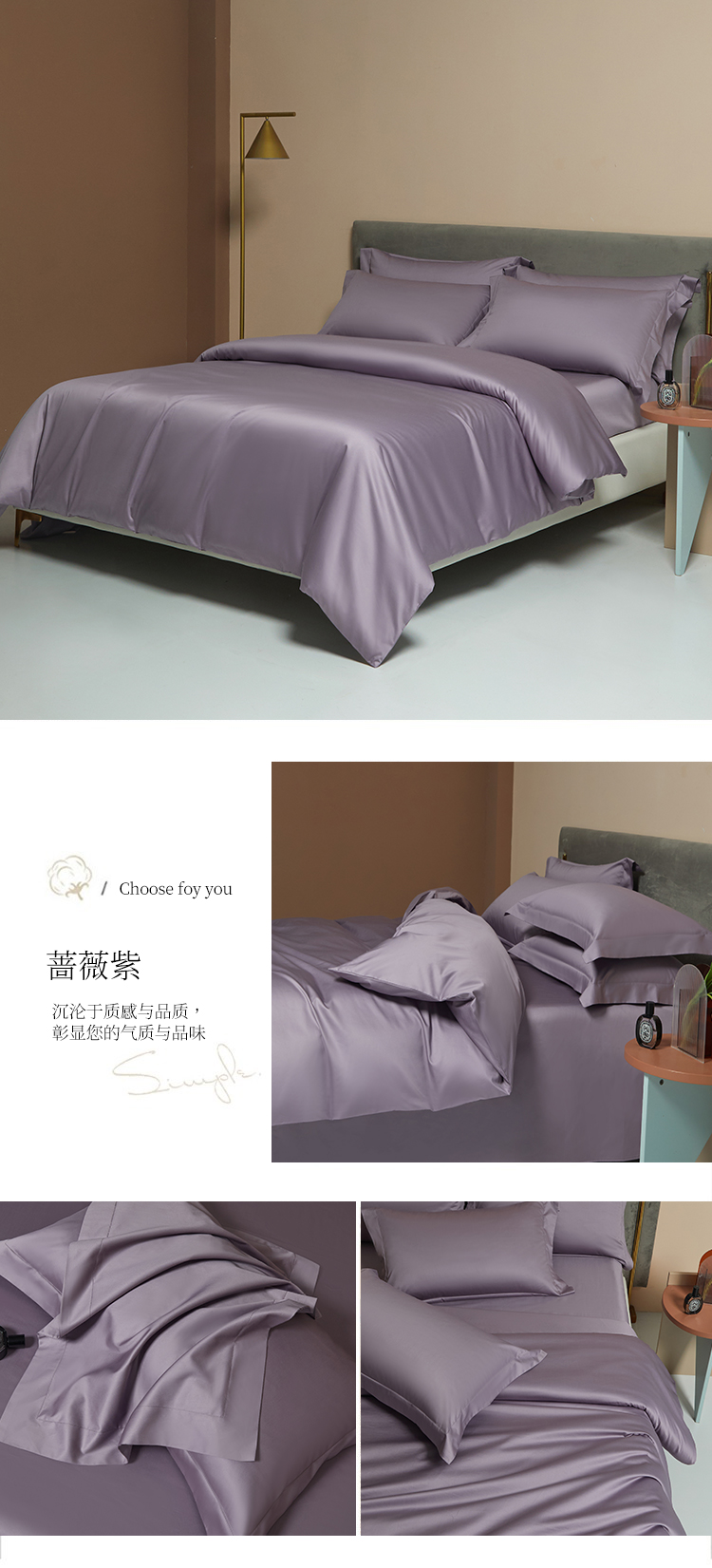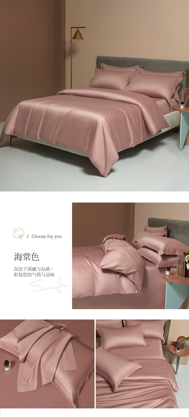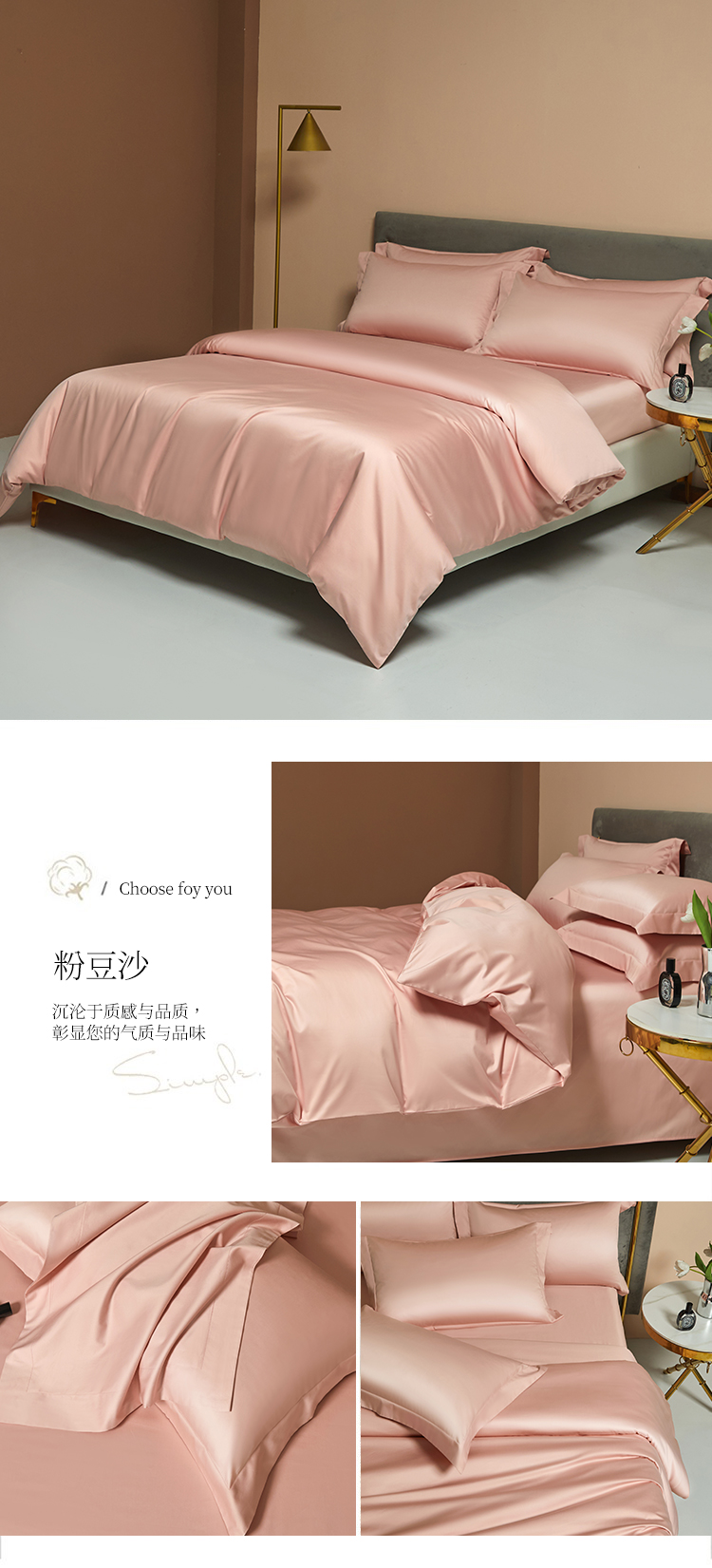【品名】:100支双股长绒棉纯色四件套