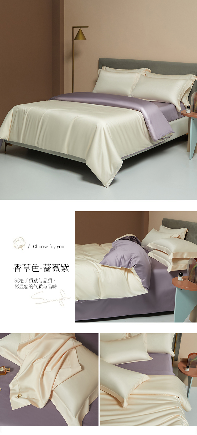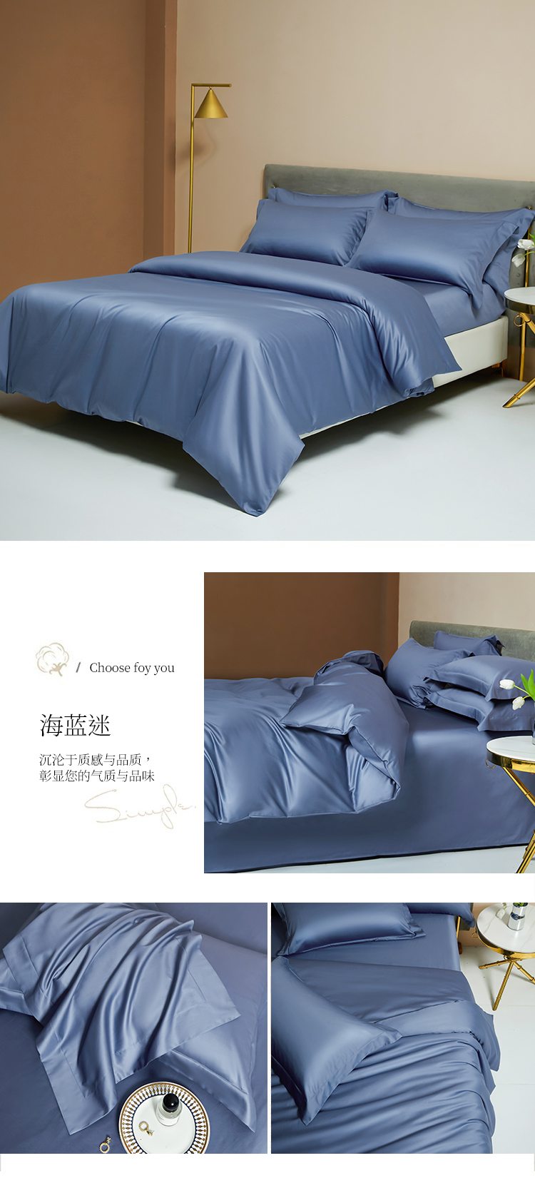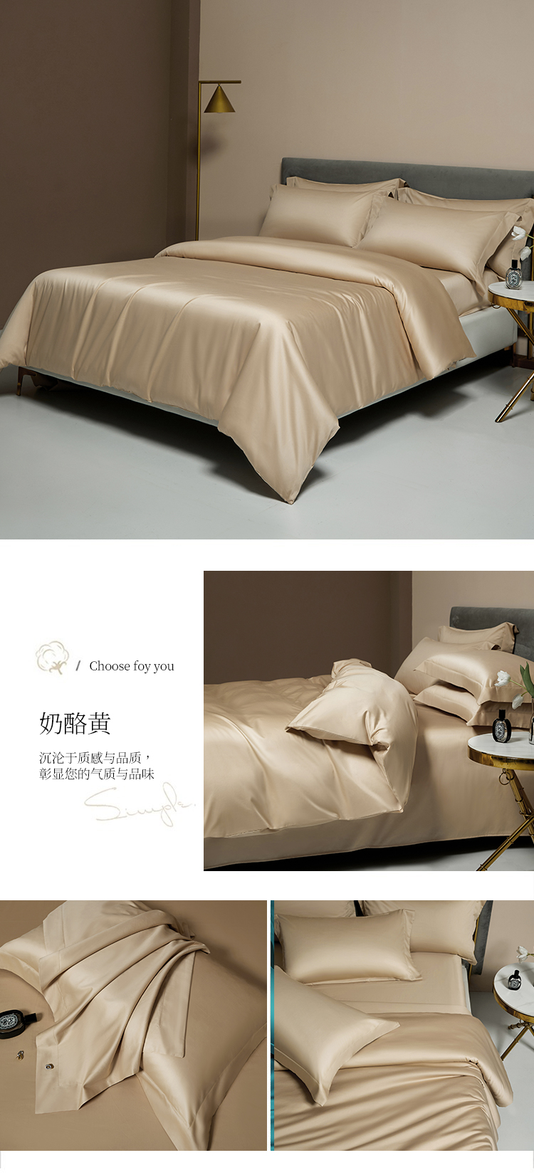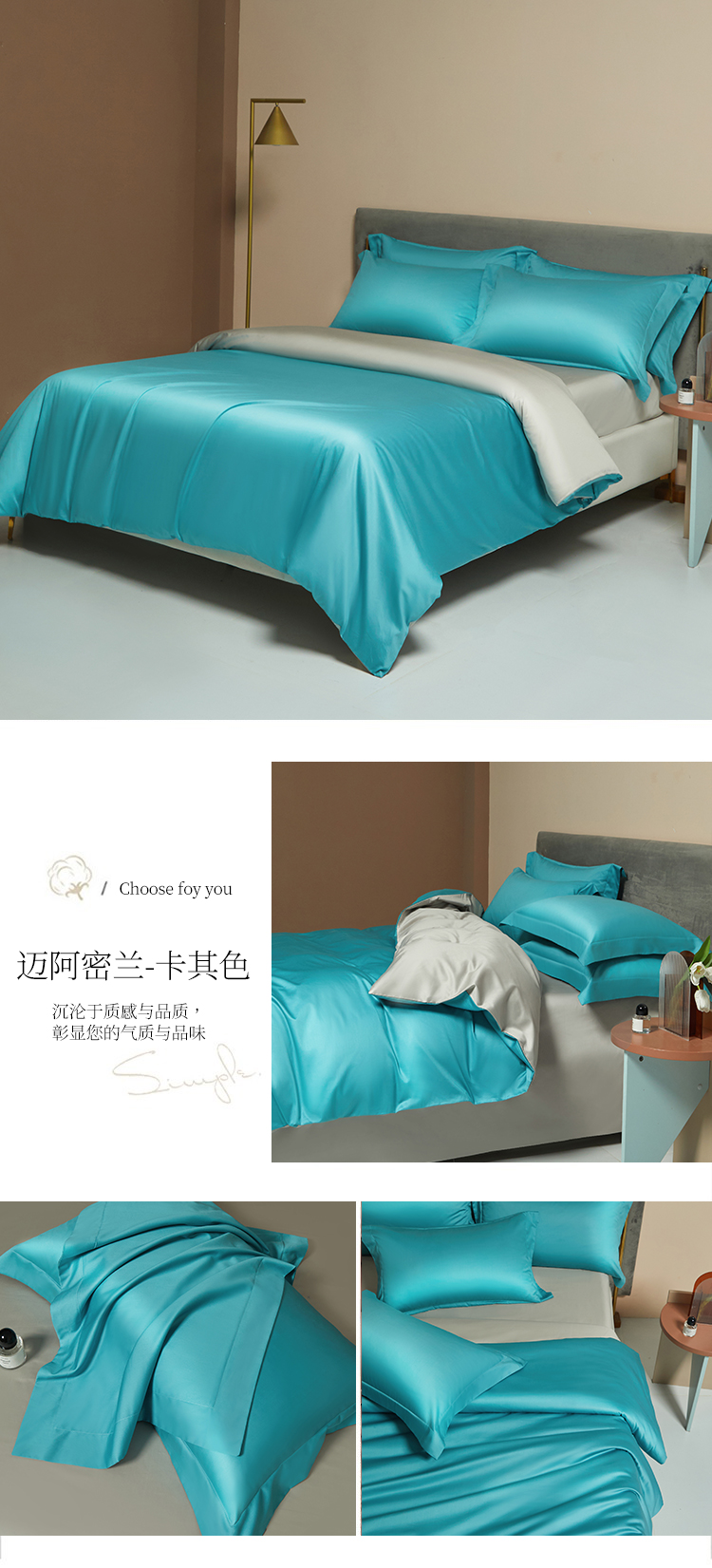 【品名】:100支双股长绒棉纯色四件套