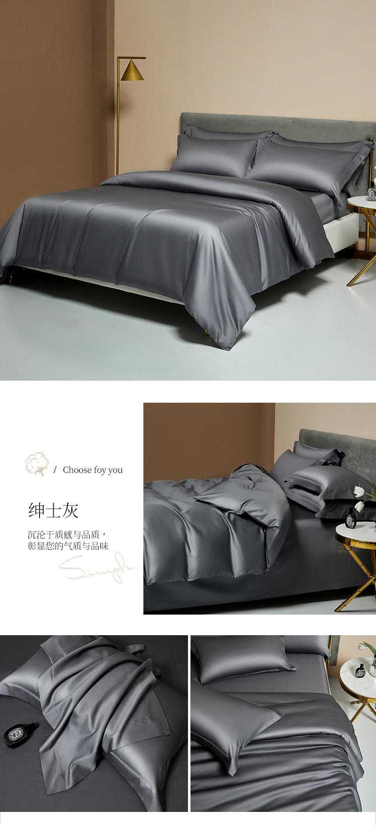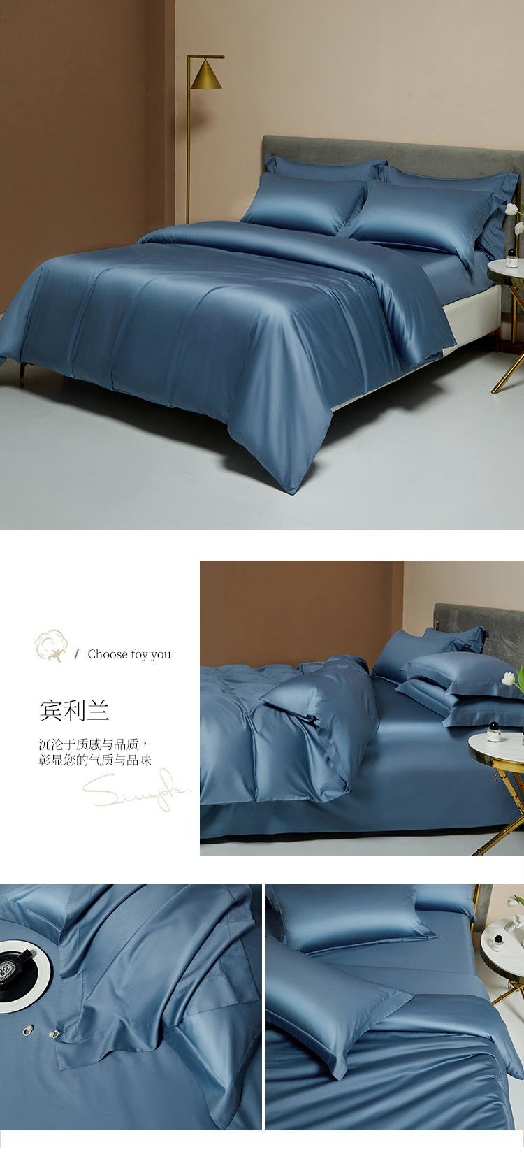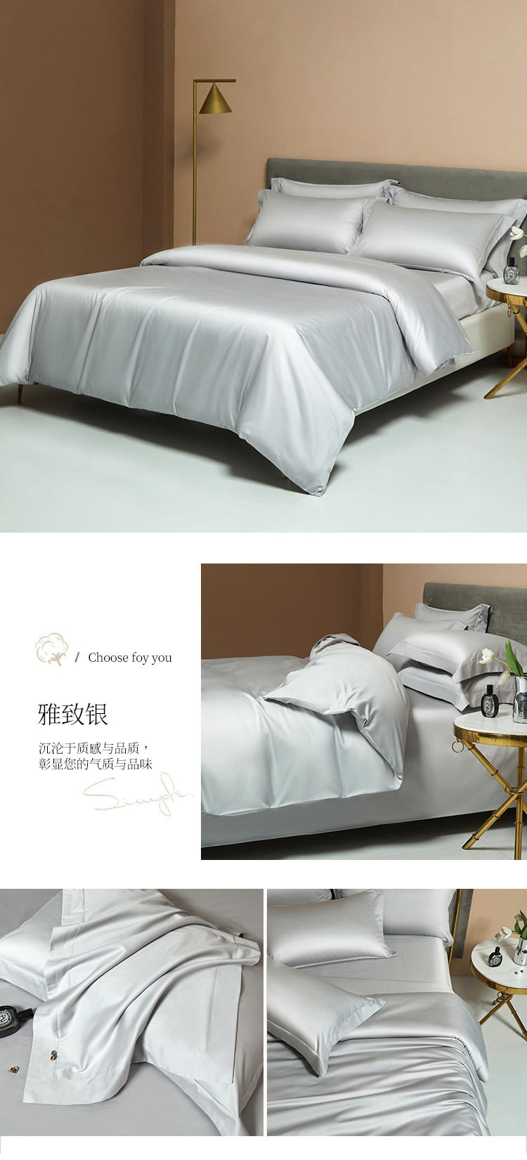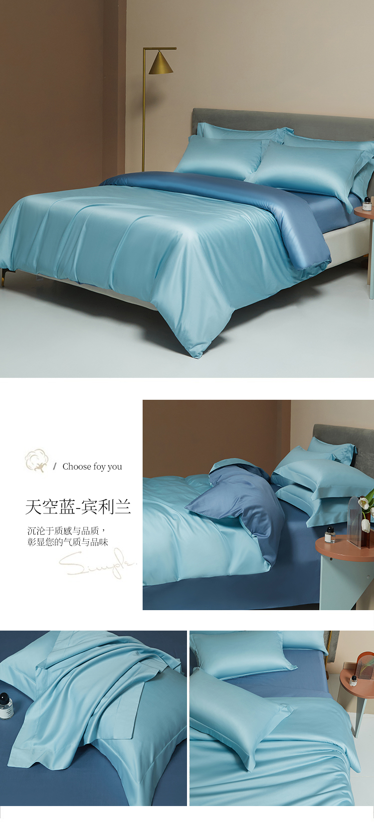 【品名】:100支双股长绒棉纯色四件套