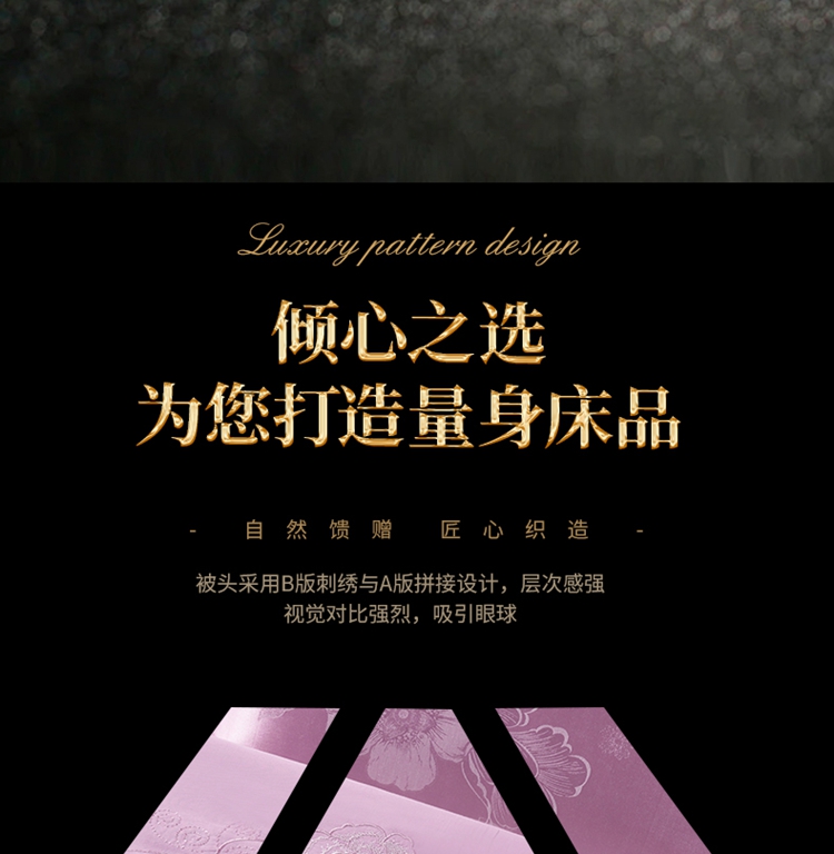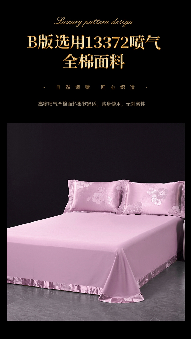 A版:40支丝绵贡缎提花; B版:喷气全棉133*72密度。